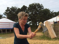 Op mijn verjaardag kreeg ik een overnachting kado. jarig of niet, ik ben een vroege vogel en sloop om 6 uur de tent uit om houtblokken te halen. Ik wilde de andere camping gasten niet wakker maken met mijn hakwerk dus dat had ik de avond ervoor al gedaan. Laarzen aan in plaats van slippertjes, want ik wilde op mijn 52ste verjaardag geen tenen kwijtraken. Netjes alle blokken opgestapeld bij de kachel.